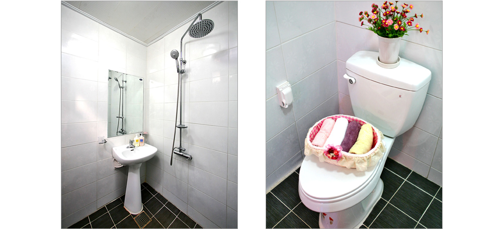- 집기시설 : TV, 침대, 냉장고, 에어컨, 전자렌지, 침구, 대형좌탁, 샤워시설, 주방조리기구 일체, 커피포트, 화장대,밥솥, 욕실용품(수건10장 비누 제공) 등